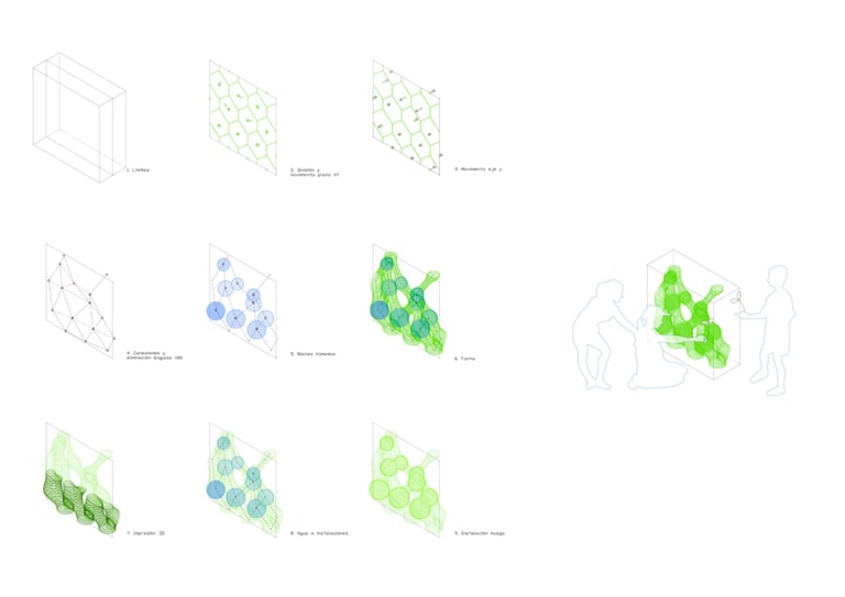 La geometría se genera paramétricamente y es optimizada: al introducir datos iniciales como la ubicación, las condiciones ambientales y las propiedades del material, el sistema produce automáticamente un diseño optimizado para mejorar la calidad del aire interior. Esta fusión de sabiduría vernácula, fabricación avanzada y estrategias basadas en la naturaleza crea un componente arquitectónico responsivo orientado a generar entornos habitables más saludables.