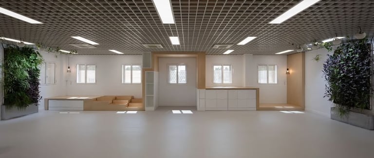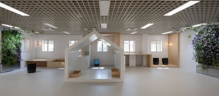 Adaptación de un aula experimental de educación infantil en la Facultad de Ciencias de la Educación de la Universidad de Málaga. Desarrollado mediante un proceso dinámico de exploración generativa, el diseño permitió probar rápidamente configuraciones de elementos modulares, condiciones de iluminación y disposiciones espaciales para lograr un entorno de aprendizaje atractivo y flexible.