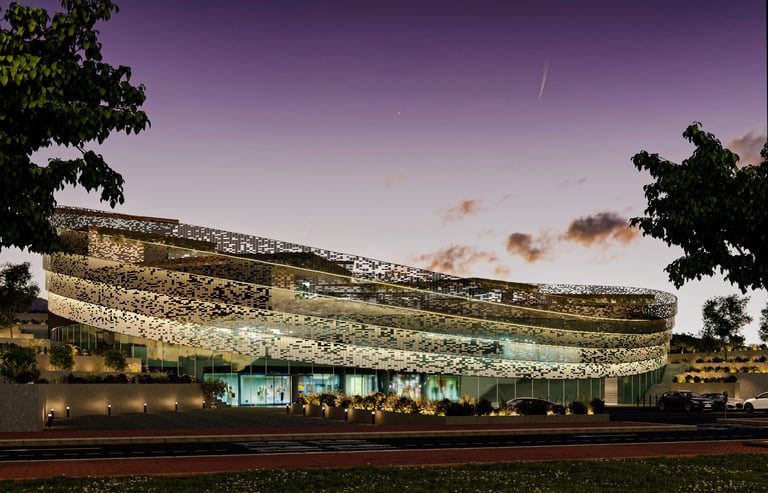 Diseño generativo de fachada para un centro comercial, que permite probar rápidamente patrones, densidades de perforación, variaciones volumétricas y estrategias de iluminación natural. A través de este proceso iterativo, la fachada evolucionó hasta convertirse en una envolvente arquitectónica contemporánea que mejora la ventilación natural, refuerza la identidad visual y se integra de manera fluida en su entorno urbano.