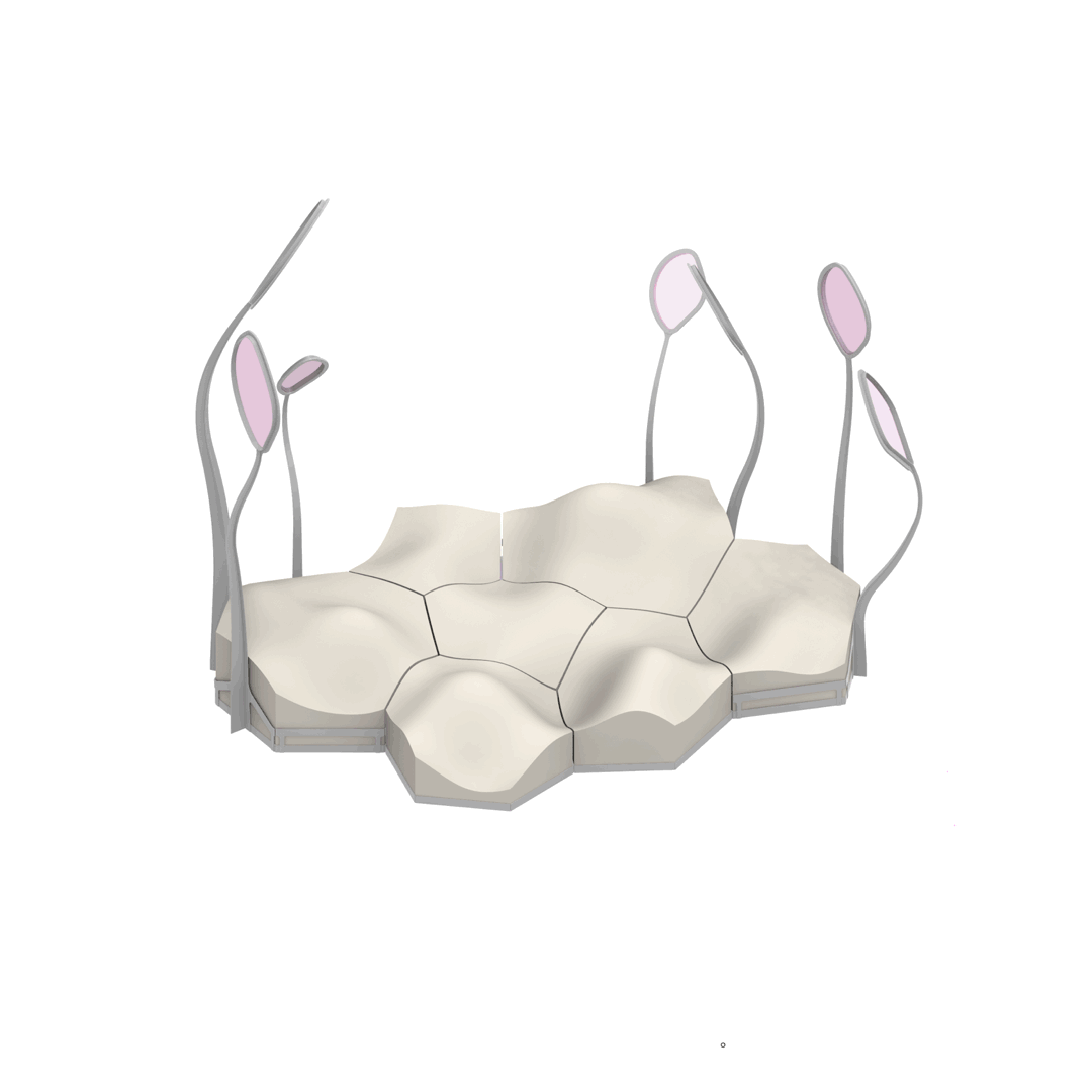 Modelado paramétrico y estrategias de fabricación digital en colaboración con María Mallo para la Bienal de Arte y Arquitectura en el Frac Centre–Val de Loire, Vierzon 2022, Francia. Optimizando el proceso de fabricación para minimizar el desperdicio de material, agilizar el montaje y reducir el tiempo de ejecución, garantizando una transición eficiente y precisa del concepto a la instalación construida.